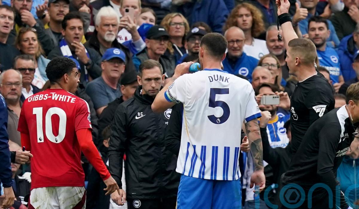 Gibbs-White’s lunging challenge on Albion substitute Joao Pedro sparked ill-tempered scenes at the Amex Stadium, leading to Forest boss Nuno Espirito Santo and Brighton head coach Fabian Hurzeler also receiving red cards.