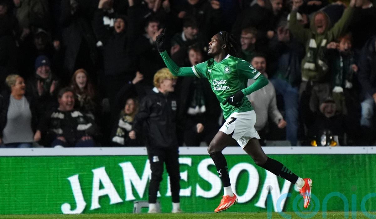 Argyle should have gone two goals up in the 12th minute after another flowing move, but Michael Obafemi thumped his shot wide from inside the area from Morgan Whittaker’s cross from the right.