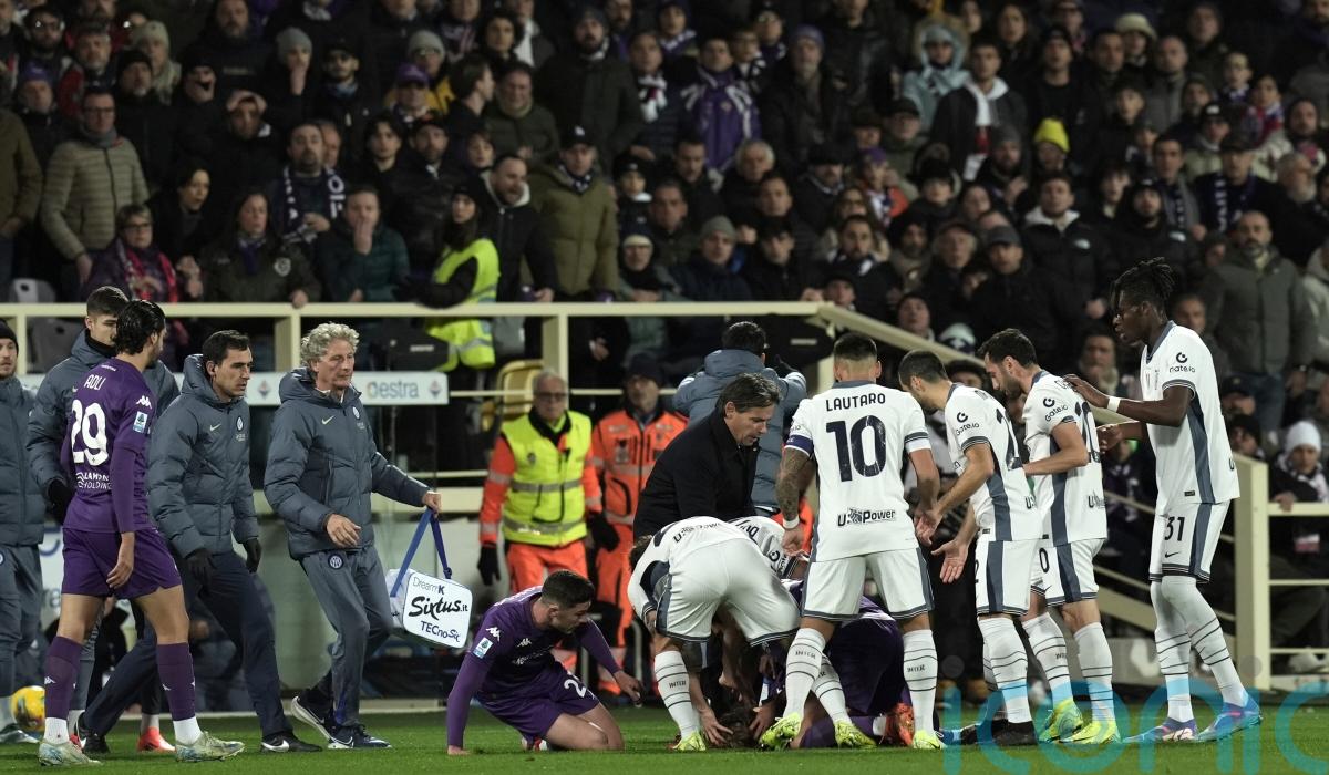 Play was suspended in Fiorentina’s home match against Inter Milan on Sunday after midfielder Edoardo Bove collapsed on the pitch.