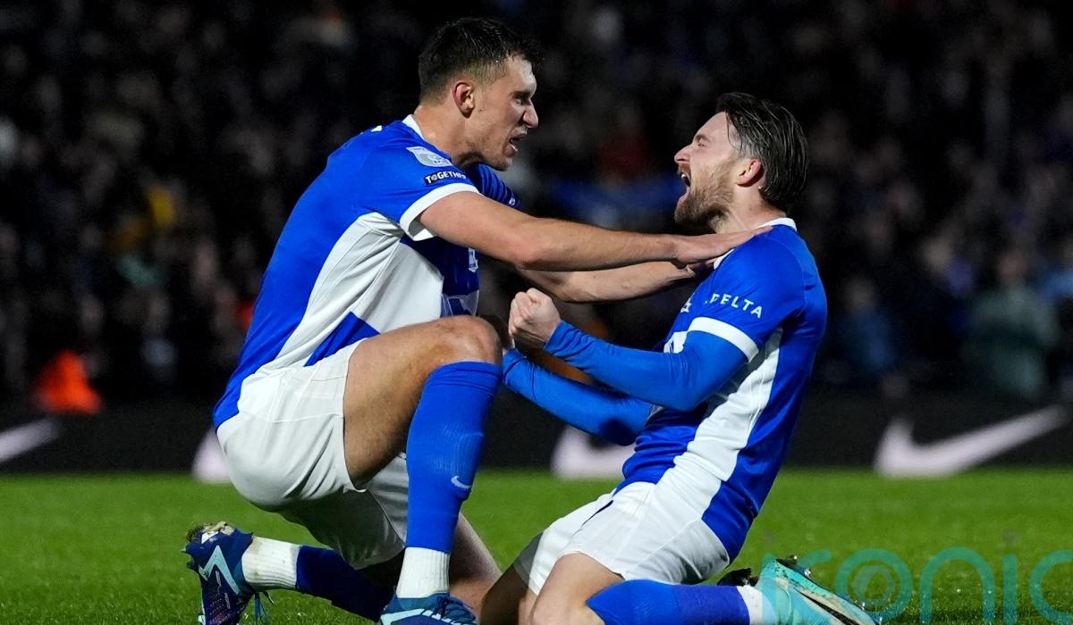 Alfie May’s first-half brace saw Birmingham keep the pressure on League One’s top two after a 2-0 victory against play-off hopefuls Stockport.