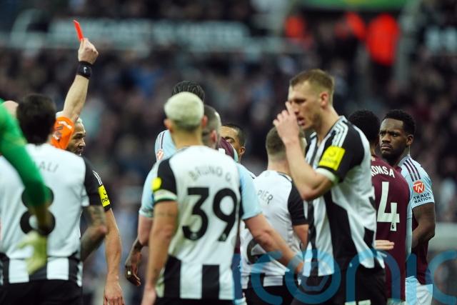 Villa were already trailing to Anthony Gordon’s early strike when the Colombia international was shown a straight red card by referee Anthony Taylor for stamping on Magpies defender Fabian Schar 13 minutes before the break, in the process strengthening the hosts’ grip on the game.