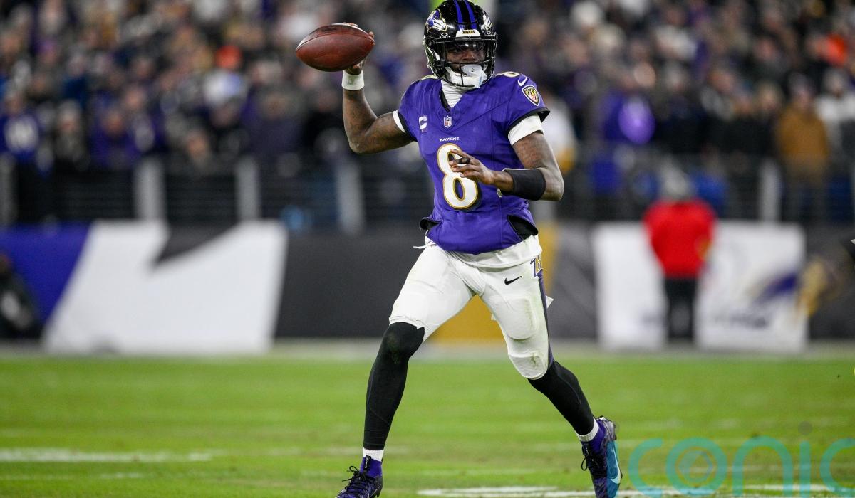 Ravens quarterback Jackson connected with Rashod Bateman and Justice Hill in the first half as Baltimore built up a 21-0 lead at half time.