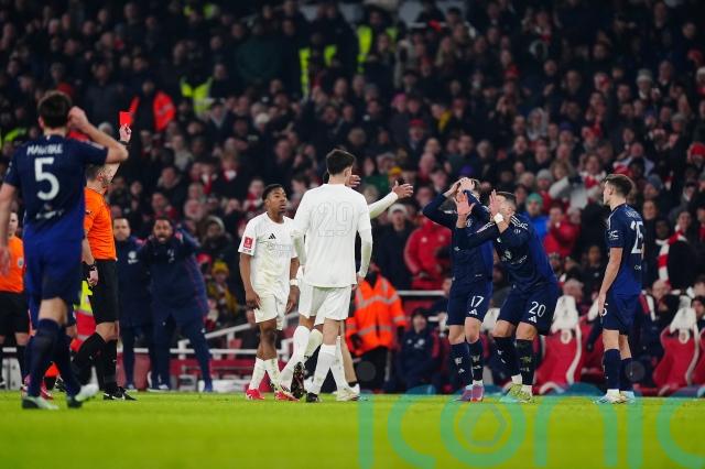 Gabriel equalised for Arsenal two minutes after Dalot’s dismissal, with Martin Odegaard denied by United goalkeeper Altay Bayindir from the penalty spot.