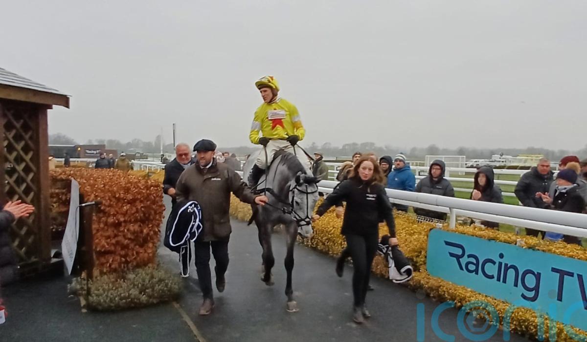 L’Eau Du Sud held on to his unbeaten record over fences as he claimed a poignant victory in the Unibet Kingmaker Novices’ Chase at Warwick.