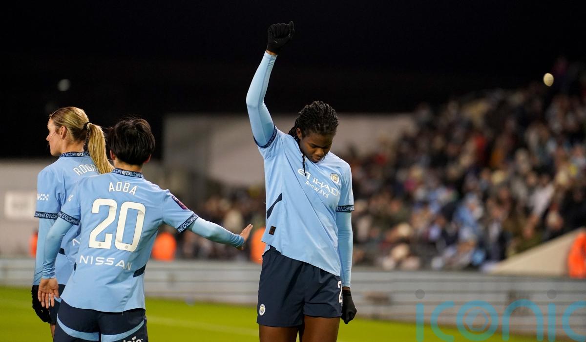 Khadija Shaw celebrated the first of her two goals in Manchester City’s 4-0 win over Liverpool by performing a Black Power salute.