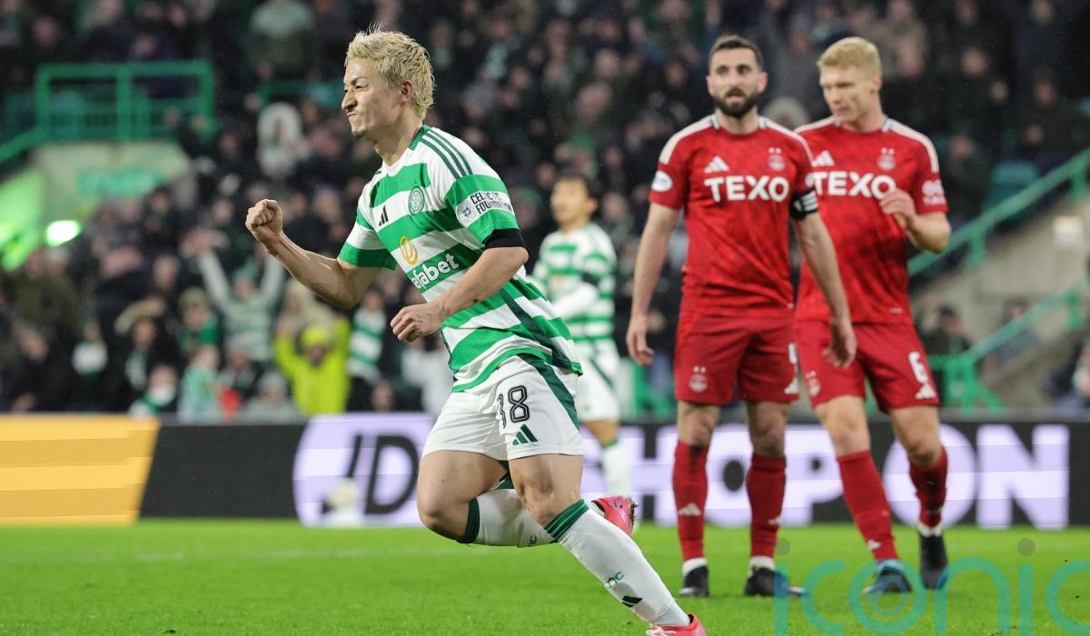 Celtic’s first goal in the 24th minute came when Kristers Tobers’ interception of an Arne Engels through ball spun high into the air and when it came down, Maeda was first to react, volleying past hesitant keeper Ross Doohan from six yards.