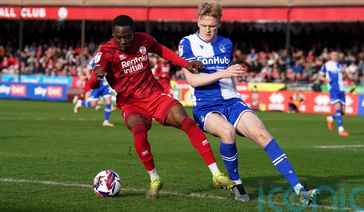 Crawley’s Canadian international midfielder Liam Fraser was narrowly off target early on when he shot wide from the edge of the area after a cross from Jeremy Kelly.