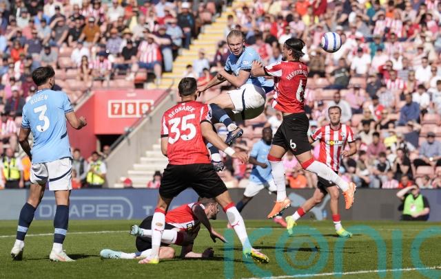 City should have gone ahead when Haaland raced on to De Bruyne’s through-ball, cut inside Bednarek and rolled it across goal but Nico O’Reilly, on moments earlier for Foden, could not complete the finish.
