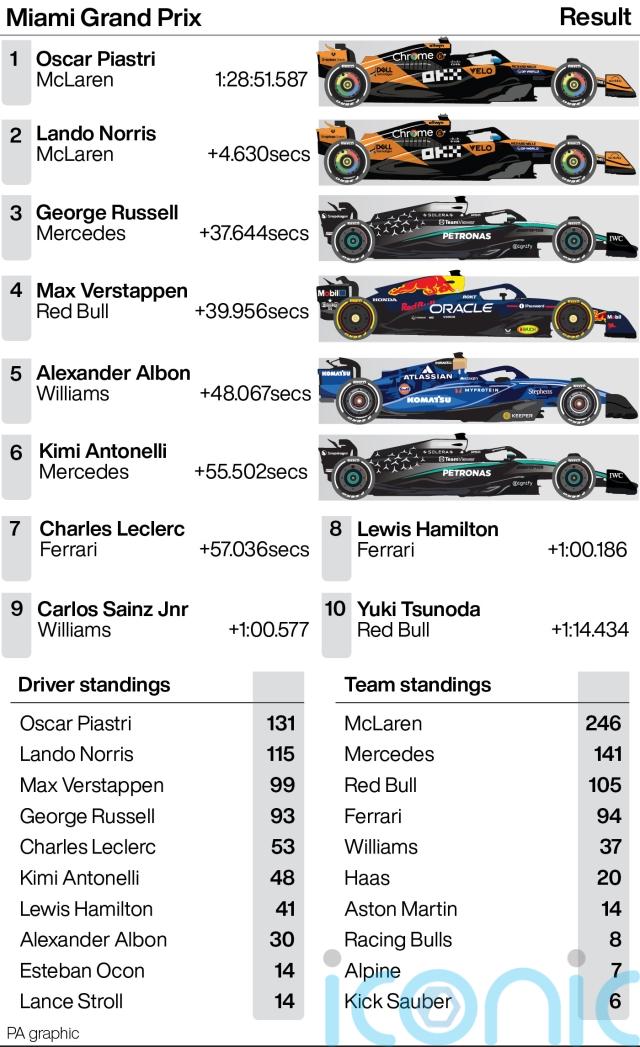 Piastri’s win in Miami added to success in China, Bahrain and Saudi Arabia and has seen him establish himself as the title favourite.