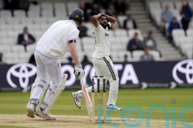 The left-hander reached 97 before putting a foot wrong, top-edging a pull off Mohammed Siraj, but his luck was in as Yashasvi Jaiswal let the greasy ball slip through his fingers. It was a third bad drop of the game for Jaiswal and sympathy was running low from Siraj, who angrily booted the turf.
