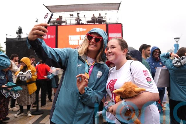 England fans brave rain for Red Roses’ World Cup victory party