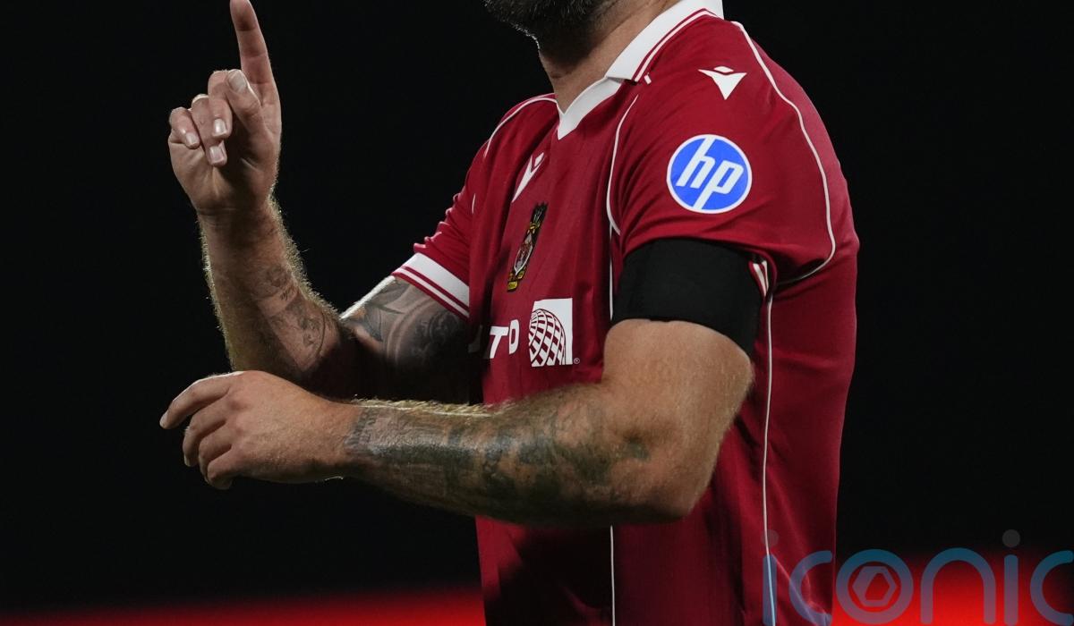 The former Wrexham striker was a late call-up after the Robins’ leading scorer Aaron Drinan was injured in the warm-up and he was the first to get to Finley Munroe’s free-kick from the left to cleverly flick past Nik Tzanev and inside the far post in the 10th minute.