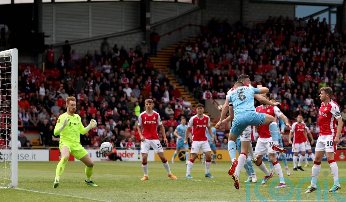 Grimsby went in front two minutes into the second period when Waterfall headed home after Wrexham failed to clear their lines from a corner, but Ben Tozer restored parity just after the hour mark with a back-post header before sending in the long throw that led to Mullin’s ‘Hand of God’ moment two minutes later.