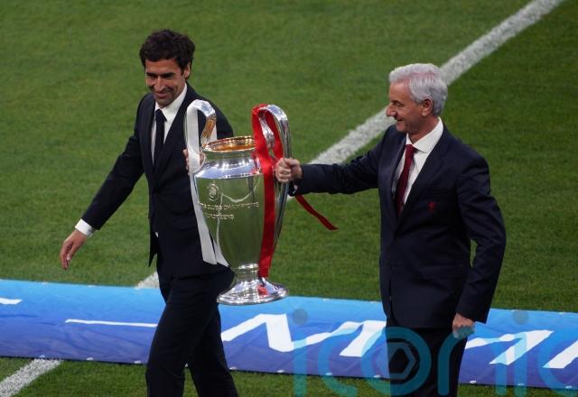 8.34pm – Former Liverpool forward Ian Rush and ex-Real striker Raul bring the Champions League trophy out onto the pitch. The players then emerge from the tunnel and the Champions League anthem starts. We are minutes away from kick-off.
