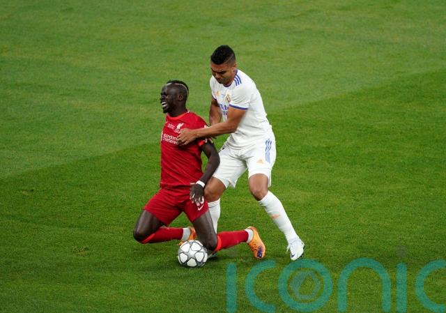 8.46pm – Benzema produces a deft flick on the halfway line, while Mane feels the full force of a Casemiro challenge which leaves him limping.
