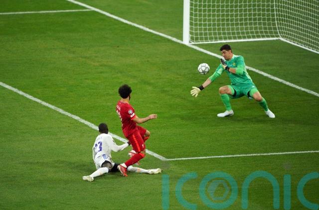 10.20pm – Courtois is having a stormer in goal for Real. Man of the match. Salah produces a fine first touch to take down a long ball over the top and makes space for a shot that the keeper superbly pushes wide. At the other end, Alisson rushes out to prevent Vinicius Jr from a shot on goal. The game is open now. Into the last seven minutes.