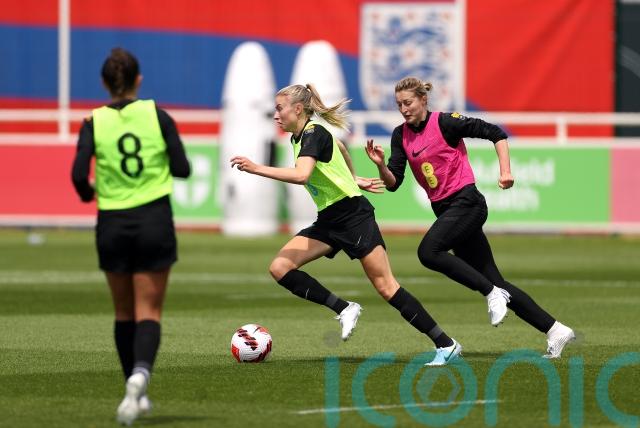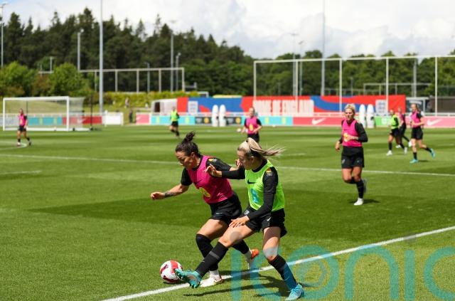 Sarina Wiegman’s Lionesses, who are preparing for this summer’s home Euros, trained on the Sir Bobby Charlton pitch at the Burton-upon-Trent base on Tuesday while Gareth Southgate’s men’s team, ahead of Nations League fixtures, did so elsewhere on the site.