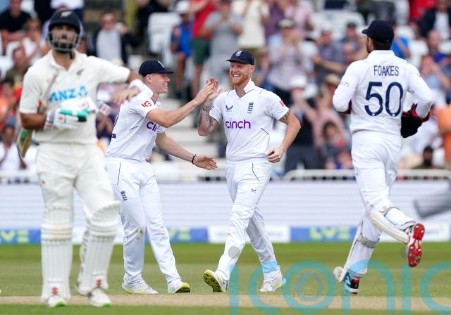Broad replicated Stokes’ short-ball methods but got the desired results, snaring Henry’s edge on the way through to Ben Foakes’ gloves. He backed it up with the wicket of the injured Kyle Jamieson – who is not due to bowl after suffering a back injury – using the same aggressive tactics. With his movement limited, Jamieson tried to hook rather than evade and was well caught by the athletic Foakes.