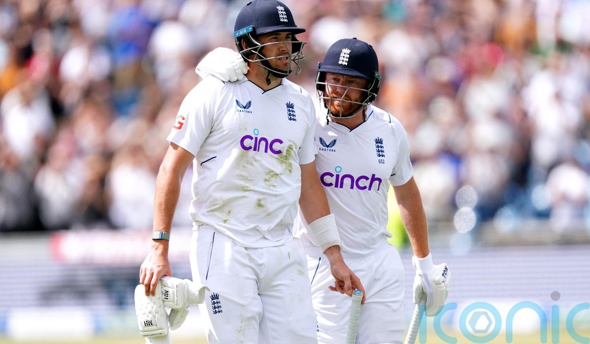 Jamie Overton fell agonisingly short of a century in his first Test innings, but Jonny Bairstow’s 162 helped England establish a slender lead over New Zealand on day three at Headingley.