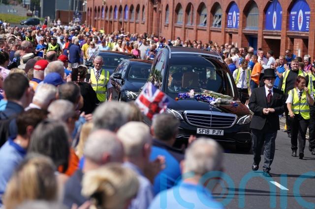 Before arriving at the church, the funeral cortege drove by Ibrox Stadium, where hundreds of people lined both sides of Edmiston Drive to pay their respects.