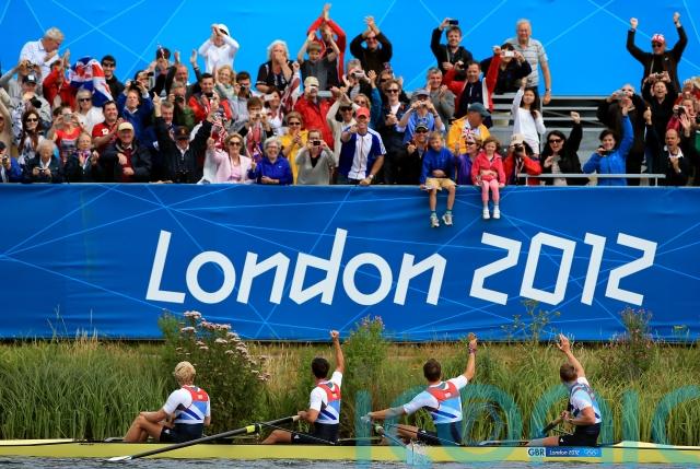 Alex Gregory, Tom James, Pete Reed, Andrew Triggs-Hodge kicked off a day to remember when they stormed to gold on the water at Eton Dorney. They won in six minutes 03.97 seconds, beating Australia and the United States into second and third respectively.