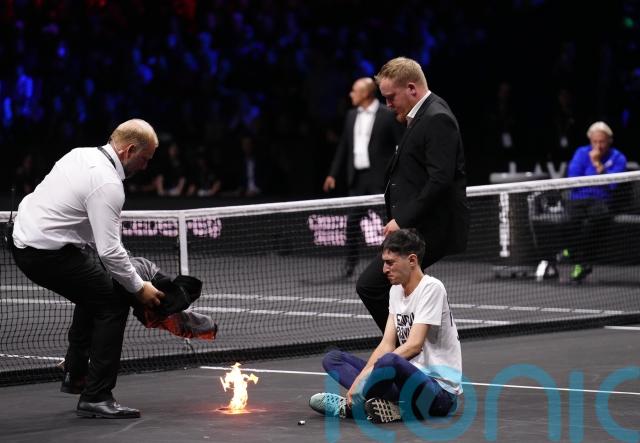 Players stunned as protester sets arm on fire in dramatic incident at Laver Cup