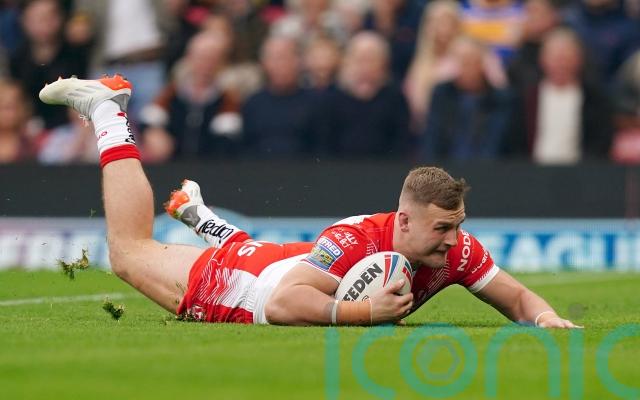 Centre Liam Sutcliffe was thrown back from the line but there was no stopping Leeming just before the break when he took Smith’s pass and twisted out of the tackle from James Roby and Lees to score his side’s first try.