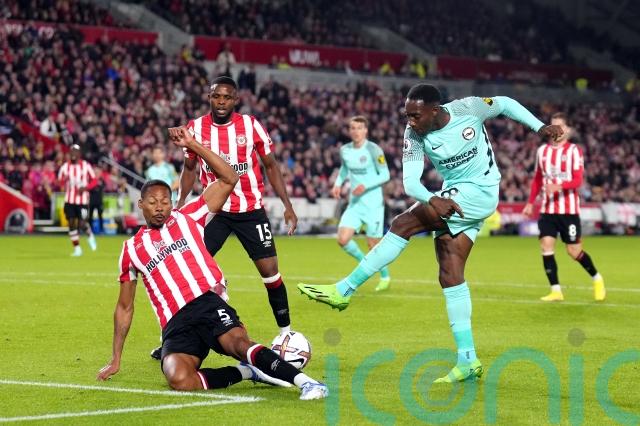 Danny Welbeck had a goalbound shot blocked by Ethan Pinnock and a header saved by David Raya.