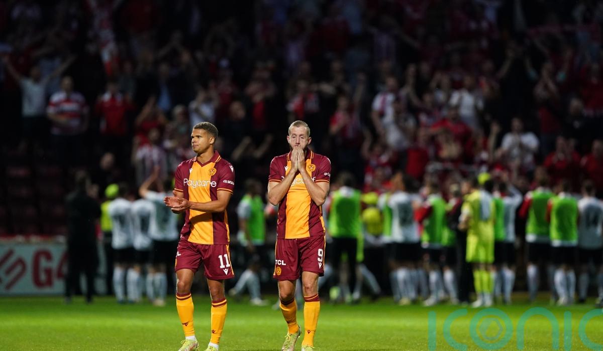 Motherwell lost 2-1 to Aberdeen in controversial circumstances after the video assistant referee dismissed stoppage-time penalty claims when Anthony Stewart pulled Ricki Lamie’s shirt and threw him to the ground before Matty Kennedy appeared to handle.