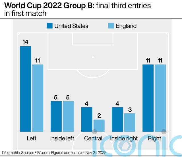 Both England and the USA focused their attacking efforts on the wings during their first matches, with the majority of their final third entries coming in the outer channels.