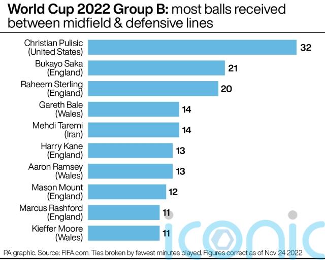 Chelsea’s Christian Pulisic – playing on the left of a front three – delivered 14 crosses, the most of any player in Group B, while Fulham left-back Antonee Robinson supported with seven. No other USA player attempted more than three.