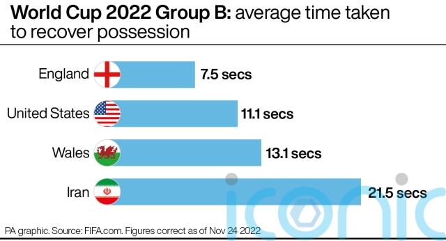 On average, Southgate’s side regained possession within eight seconds of losing it, by far the fastest of any team in Group B.