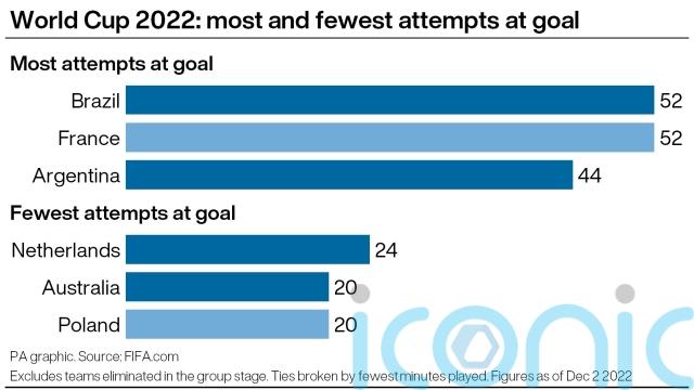 The USA outshot the Netherlands by 28 to 24 in the group stage, but the Dutch converted 21 per cent of their efforts for a total of five goals compared with two. Promising forward Cody Gakpo has netted from three of his five attempts and is tied at the top of the Golden Boot standings.