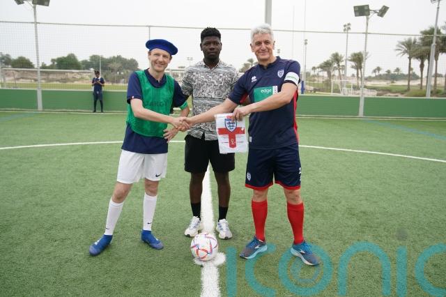 The Three Lions landed the first blow on Saturday as their supporters beat their French counterparts 7-4 in a match at a windswept Doha Sports Park.