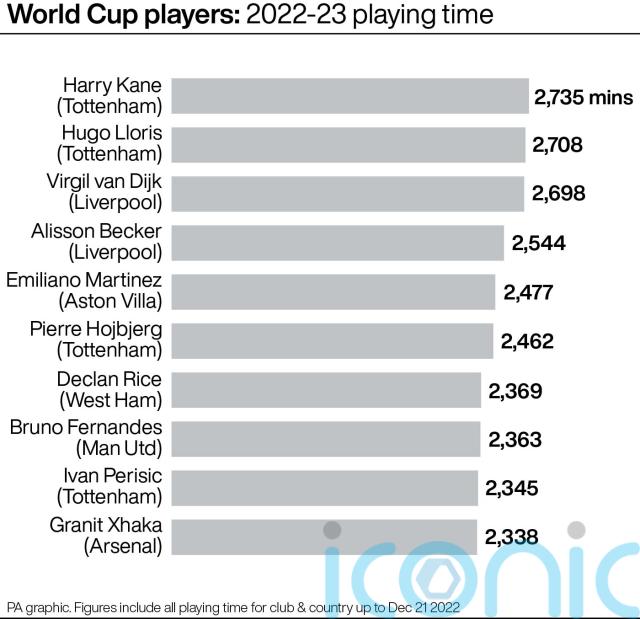 Spurs’ World Cup contingent average 1,993 minutes this season, the highest among Premier League clubs, with an average of over six hours at the World Cup as Lloris and Argentina defender Romero went all the way and Croatia’s Ivan Perisic featured in the semi-final and third-place play-off, with England duo Kane and Eric Dier and Brazil forward Richarlison reaching the quarters.