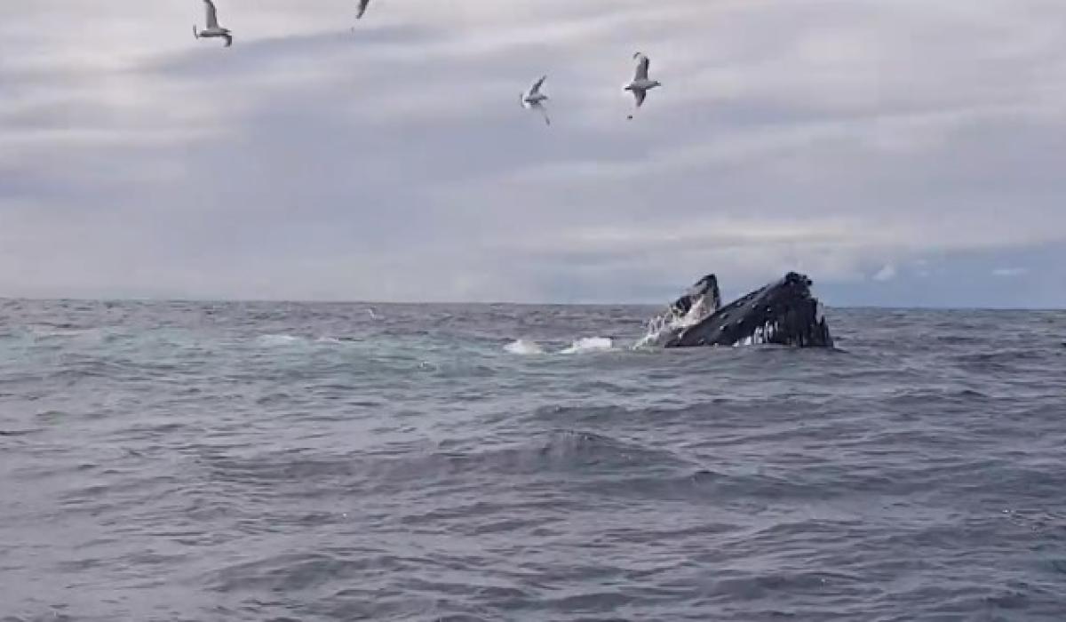A regular visitor to Donegal has captured stunning video footage and photographs of humpback whales feeding off Sliabh Liag.