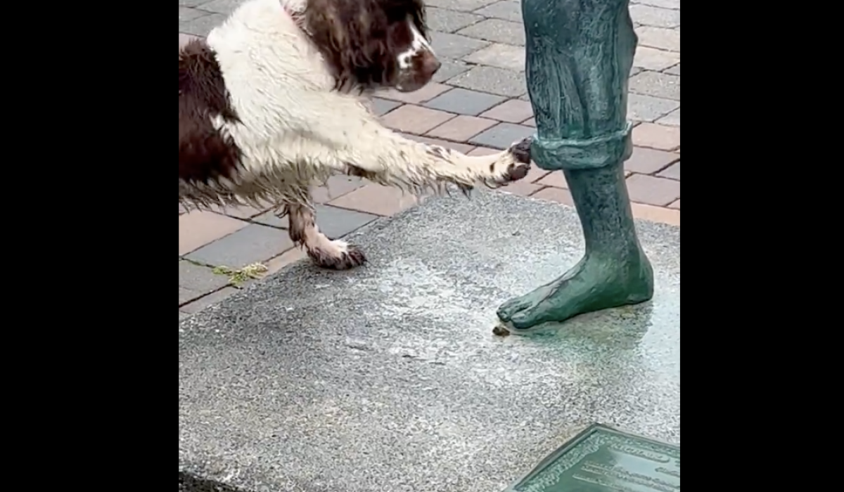 WATCH: Clare pup steals hearts as he tries to play with Richard Harris statue